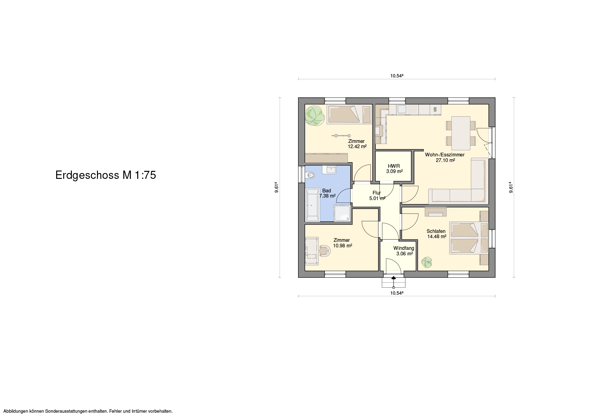 Hinweis zu Abbildungen und Flächen: Die gezeigten Abbildungen können Sonderausstattungen enthalten, die nicht im Standardleistungsumfang inbegriffen sind (z.B. Garagen, Anbauten, Carports, spezielle Fassadengestaltungen). Alle Flächenangaben sind Circa-Werte. Maßgeblich für die Ausführung und den Leistungsumfang ist ausschließlich die jeweils gültige Bau- und Leistungsbeschreibung (BLB) der Ü-Haus.de GmbH.
