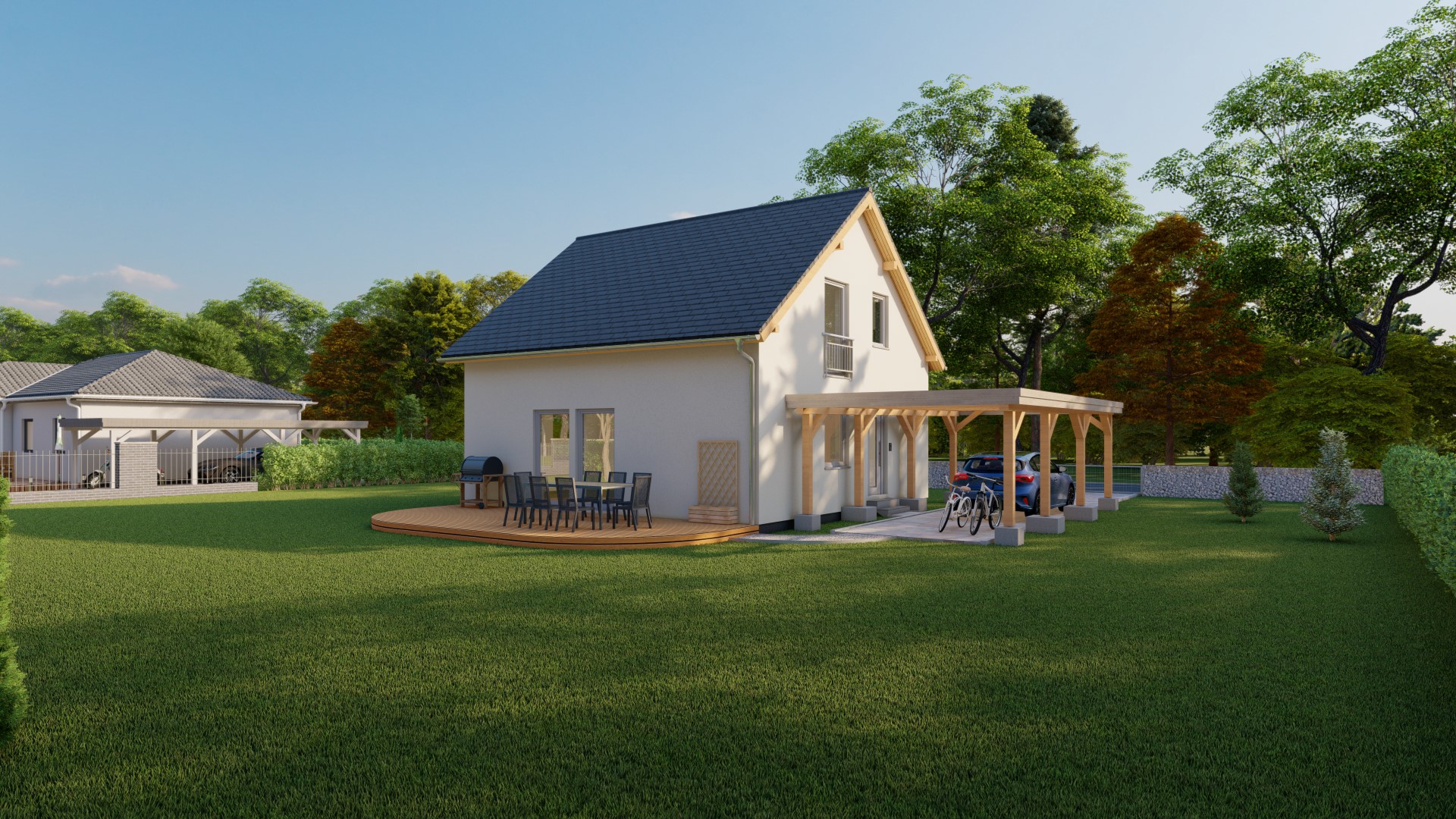 Die Häuser der Reihe NOVA vereinen den Wunsch nach einem geräumigen und komfortablen Heim. Mit klassischer, reduzierter und stilvoller Architektur überzeugt dieses Fertighaus durch hohe Wohnqualität und durchdachte Raumaufteilung.
