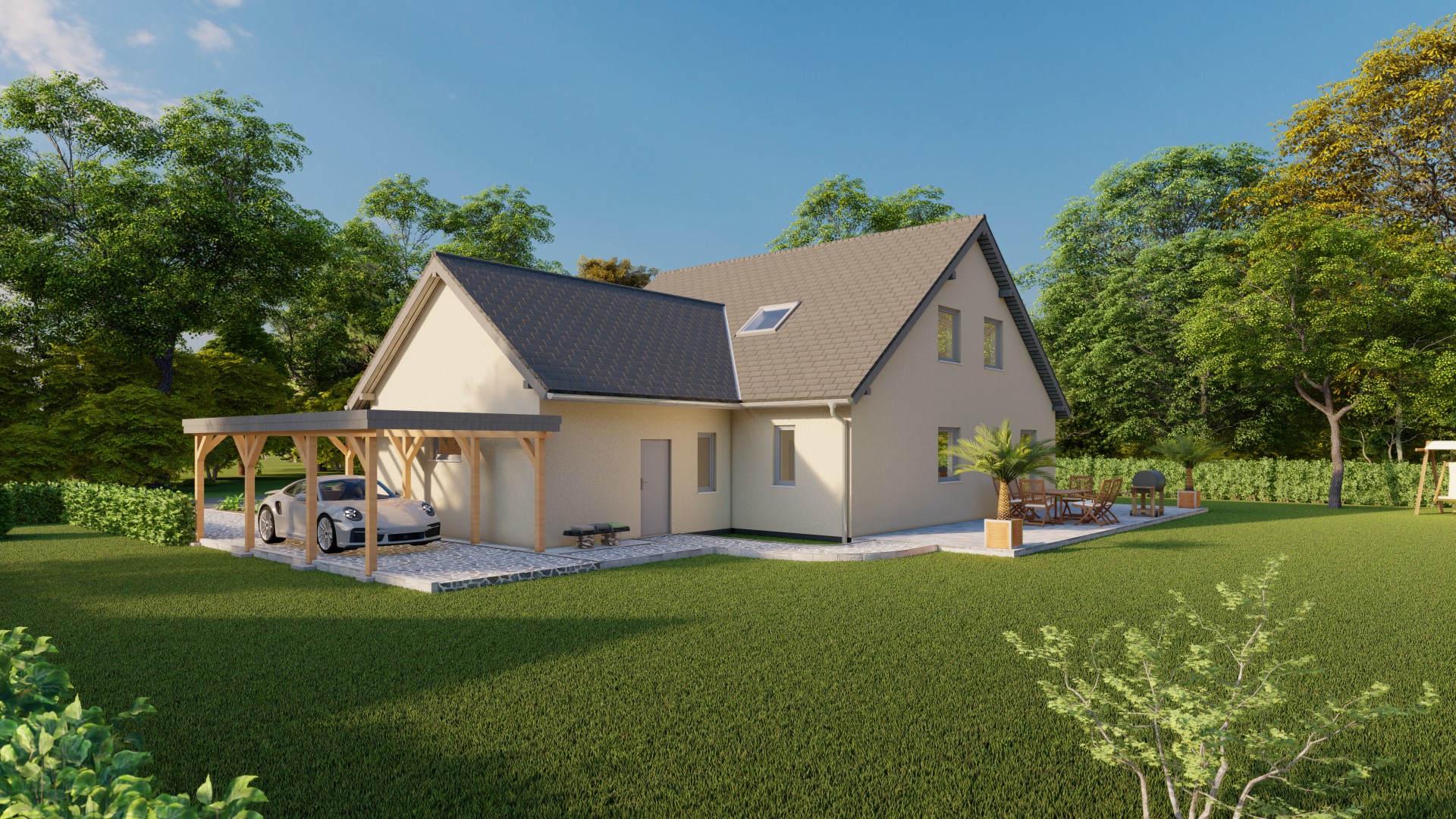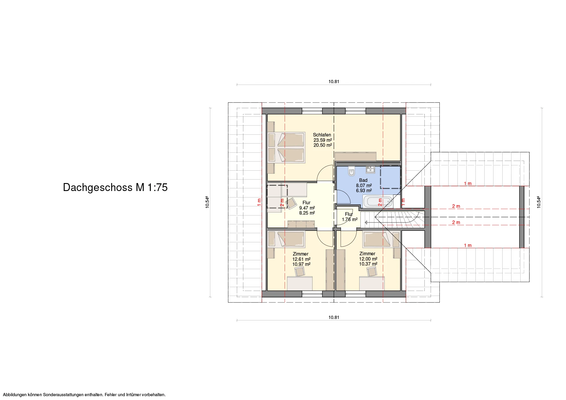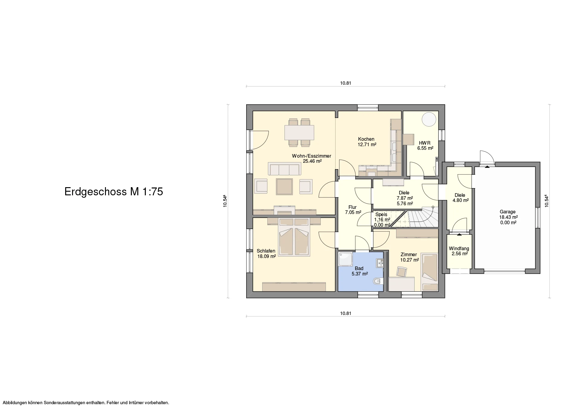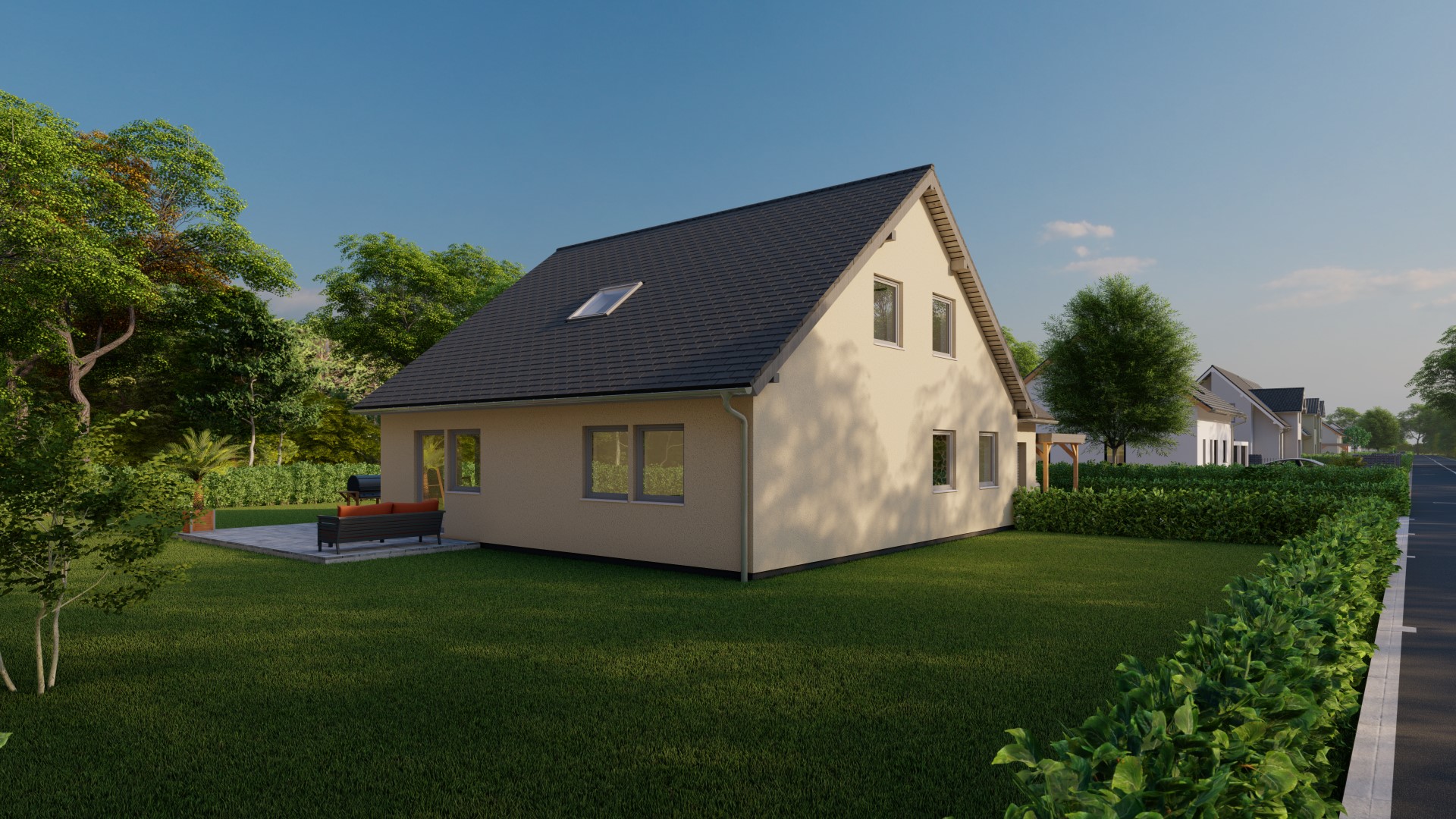 Hinweis zu Abbildungen und Flächen: Die gezeigten Abbildungen können Sonderausstattungen enthalten, die nicht im Standardleistungsumfang inbegriffen sind (z.B. Garagen, Anbauten, Carports, spezielle Fassadengestaltungen). Alle Flächenangaben sind Circa-Werte. Maßgeblich für die Ausführung und den Leistungsumfang ist ausschließlich die jeweils gültige Bau- und Leistungsbeschreibung (BLB) der Ü-Haus.de GmbH.